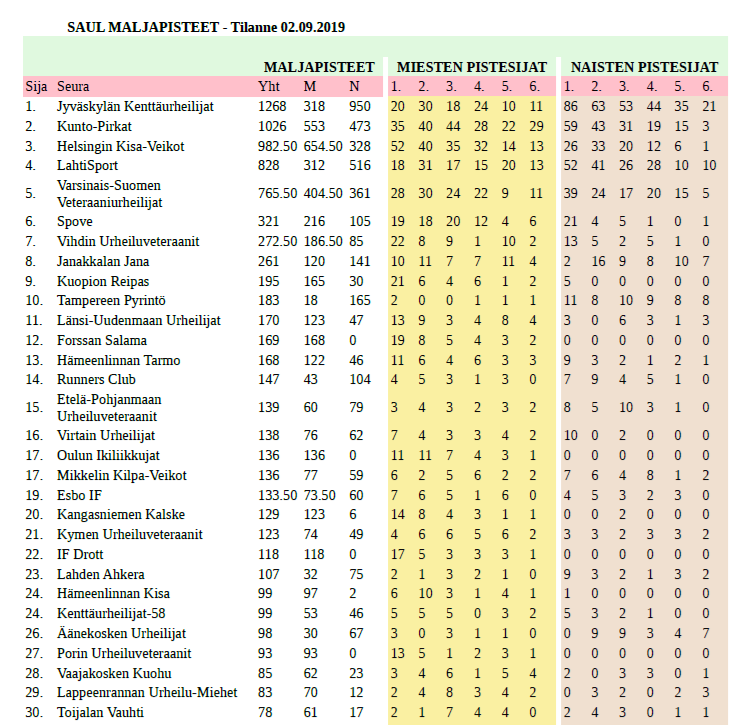 2.9.201913.1.2023 SAUL maljapisteet 2.9.2019