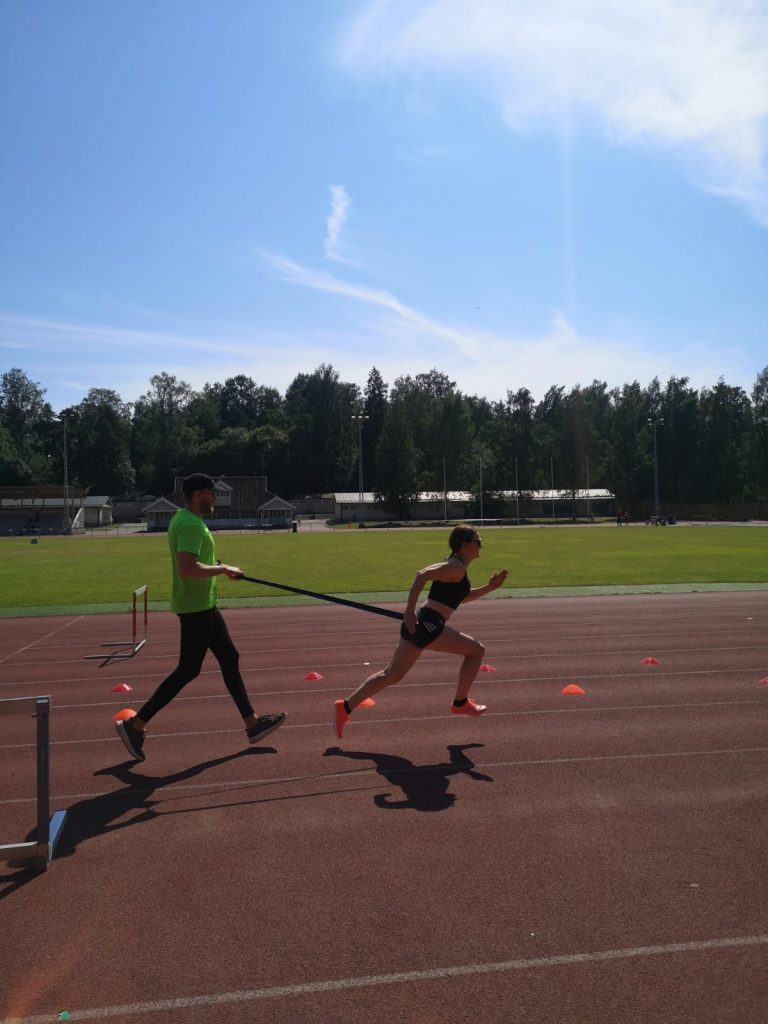 Tällä harjoitteella kehitetään pikajuoksijan  tekniikkaa ja voiman käyttöä.  Tärkeää on pitää juoksuasento mahdollisimman optimaalisena, vaikka vastus onkin.