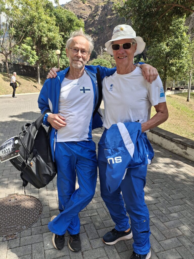 Jarmo Lipasti ja Lasse Kyrö, tyytyväiset suomalaiset urheilijat Madeirassa. Kuva: Karita Soukko