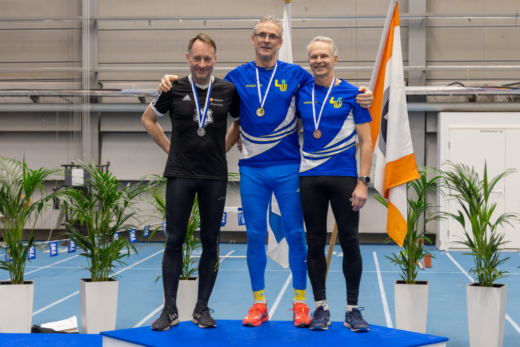 Kuvassa M60 sarjan mitalikolmikko. Vasemmalta Jukka Hannula, Paavo Reilson, Kari Pohjola. Kuva, Aarto Nevala