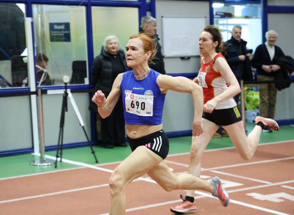 Varpu Holmbergilta (N85) sujui 200 metriä mainiosti ajassa 56,61. Terhi Kokkonen (JKU) menetti halli-SE:n Marja Metsänkylälle (V-S Masters). ”On ihan hienoa luovuttaa uusi SE Marjalle, koska Marja on vielä niin nuori”, sanoi upea Terhi Kokkonen. Helsingin Kisa-Veikkojen Yesenia Myllyniemi (N45) juoksi Liikuntamyllyn ratakierroksen aikaan 27.00. Se on hieman parempi kuin voimassa oleva Katrin Mertasen SE (27.04), mutta Katrin saa vielä pitää ennätyksensä, sillä Yesenia on hieman liian nuori tähän sarjaan (täyttää 45 vasta maaliskuussa). Esbo IF:n Ella Räsänen (N30) tuli vauhdikkaasti kierroksen aikaan 24,88 ja voitti odotetusti nuorimman ikäluokan. Erityismaininnan ansaitsee Ellan 400 metrin juoksu lauantaina, sillä aika 54,66 on hallikauden neljänneksi paras yleisessä sarjassa.