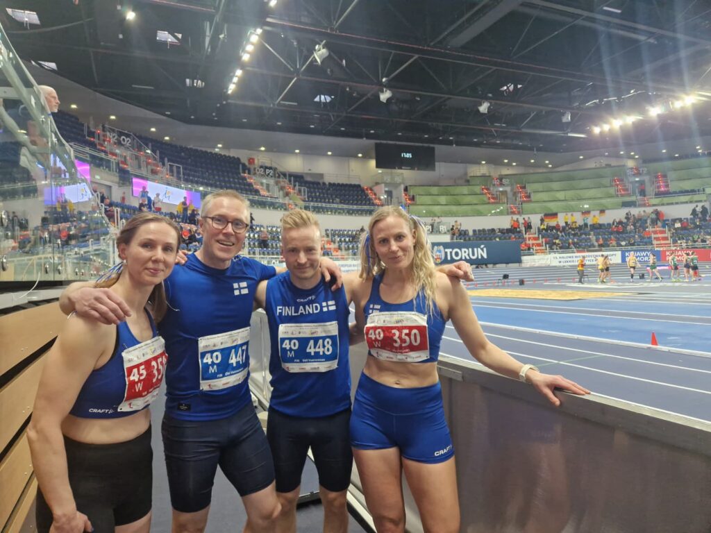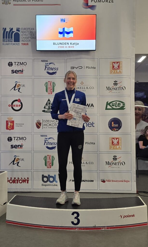 Muitakin lajeja oli toki käynnissä päivän mittaan. Ilahduttavasti Katja Blunden (N45) juoksi hienosti EM-pronssille 1500 metrillä. Katja jäi vain niukasti omasta viime vuonna juoksemastaan Suomen ennätyksestä.